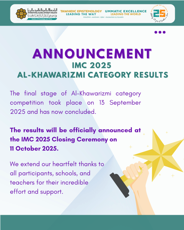 IIUM Mathematics Competition (IMC) was first organized by the Department of Computational and Theoretical Sciences (CTS), Kulliyyah of Science in 2005. Since then, it became an annual event to foster students' interest in mathematics as well as promoting the university's mathematical programme.